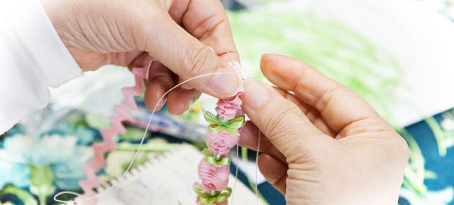 はじめて作ったリボンレイは「リックラックローズ」。